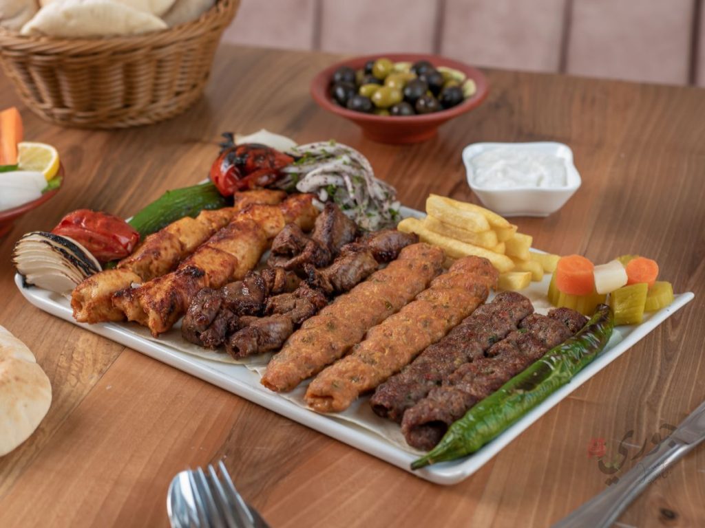 MIX GRILLED , MIX PICKLES FRIES , TOMATO , GREEN CHILLI , ONION , GARLIC SAUCE ON THE SIDE