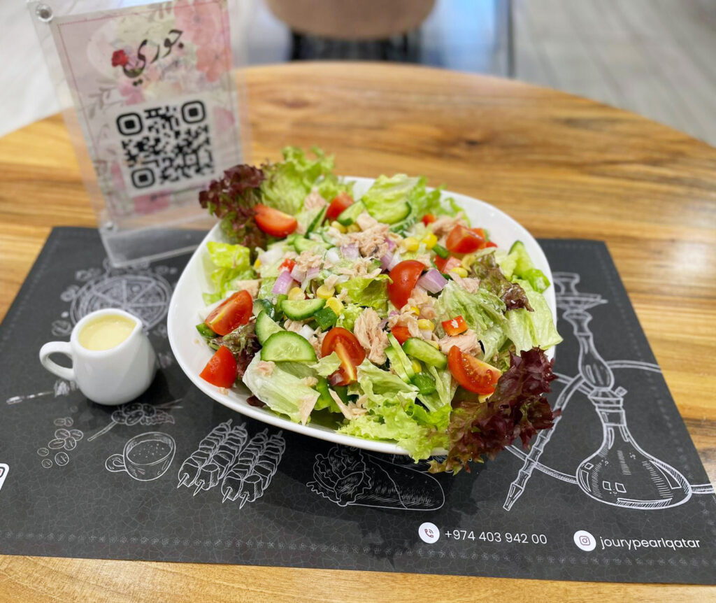 Tuna,cherry tomato,corn kernel,cucumber,red capsicum,green capsicum, red onion,mix lettuce ,dressing with mayonnaise mustard white vinegar